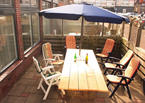 Ons terras bevat een vorstelijke tafel met voldoende ruimte rondom