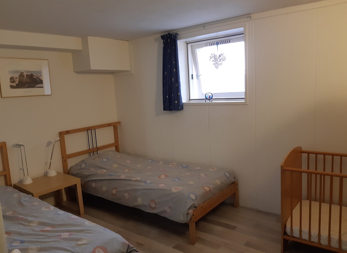 Ook weer een ruime kamer dit keer met 2 aparte eenpersoonsbedden en een babybed.