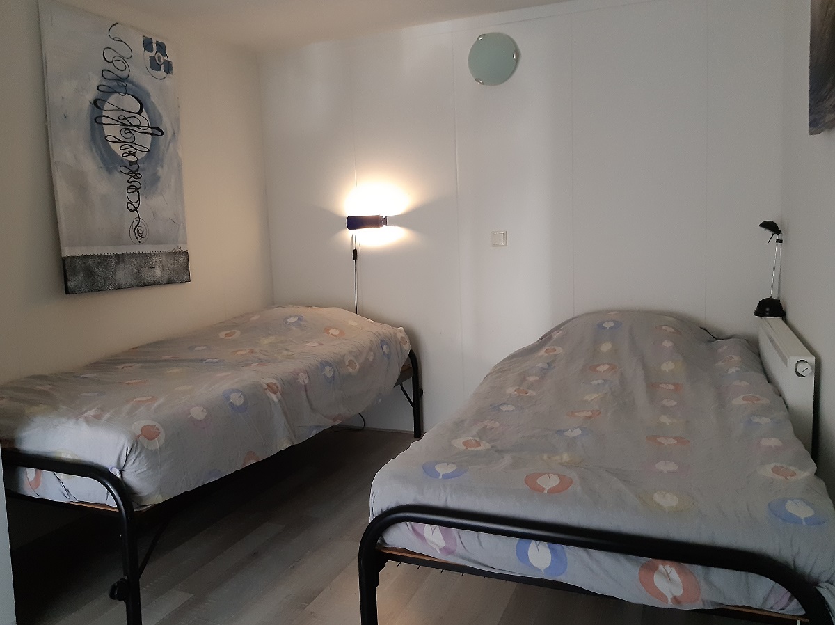 En dan nog een kamer met een onderschuifbed, dat uitgeschoven 2 eenpersoonsbedden oplevert.