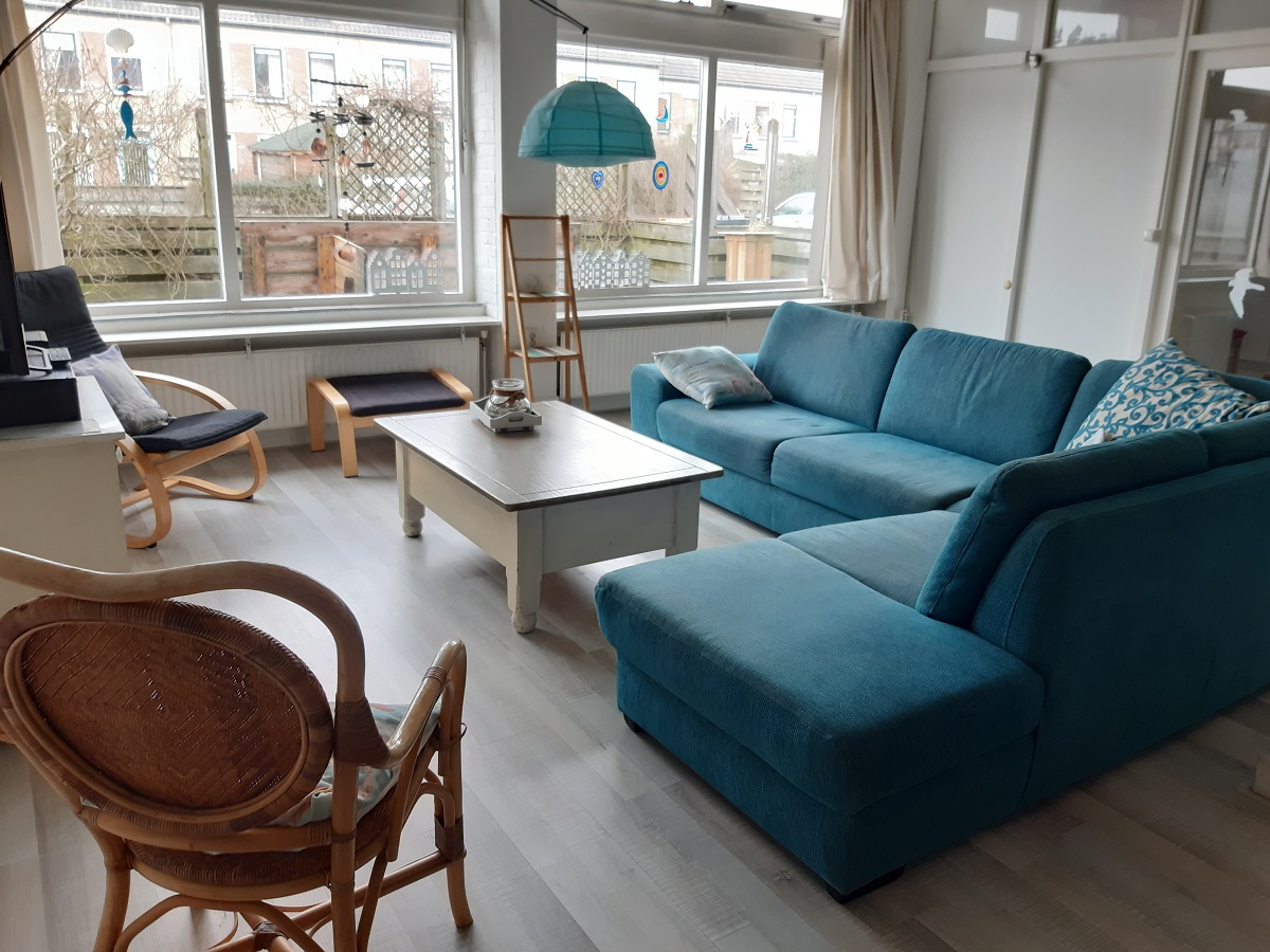 De woonkamer is ruim van opzet met een mooie lichtinval van buiten.